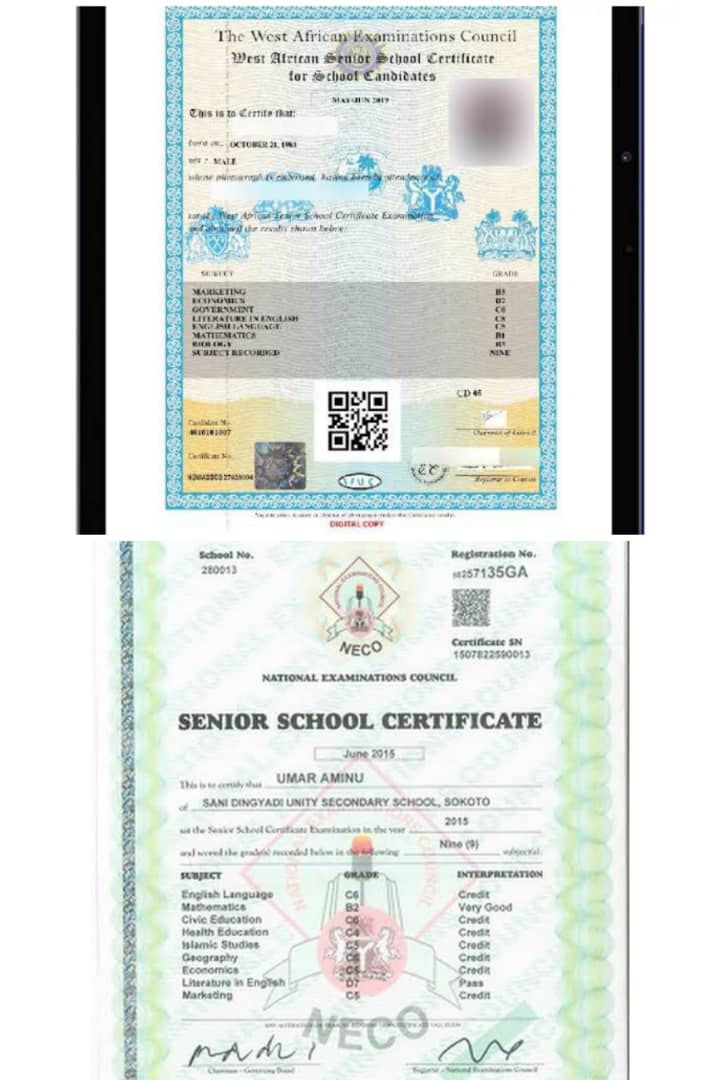 Unified Tertiary Matriculation Examination Original Result